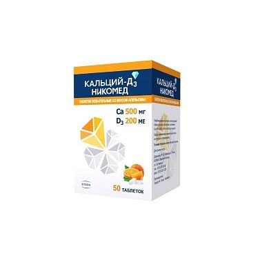 Кальций-Д3 Никомед вкус апельсина 500мг/ 200ме жевательные таблетки флакон №50