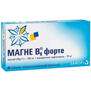Магне В6 форте 100мг+10мг (20х2) таблетки покр.плен.обол. контурн.ячейков.упак. №40