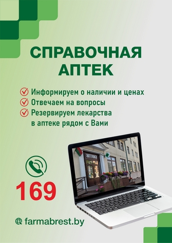 Брестская центральная районная аптека №2 первой категории 8(0162) 55-47-82 г. Брест, пр.Машерова,76-130 круглосуточно